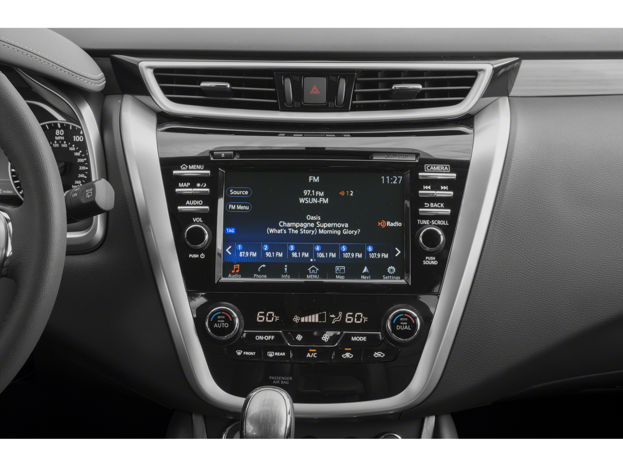 - Radio: AM/FM/CD Audio System w/Navigation -inc: 11 speaker Bose premium audio system, audio auxiliary input jack, NissanConnect w/Mobile Apps, 8" color display w/multi-touch control, front USB port, Bluetooth® hands-free phone system, streaming audio via Bluetooth®, hands-free text messaging assistant, SiriusXM satellite radio voice recognition for navigation and audio, SiriusXM Traffic, SiriusXM Traffic Link, rear USB port and HD radio