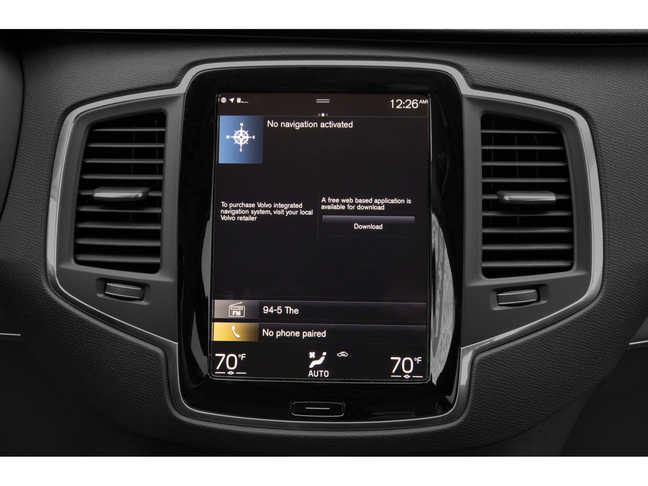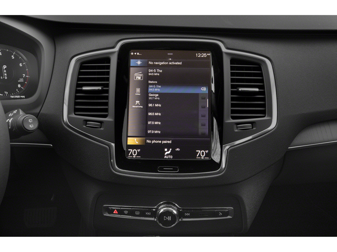 - Radio: High Performance Audio System w/Sensus Nav -inc: 10 speakers including subwoofer, 9" Volvo Sensus touchscreen display, Bluetooth® connectivity w/audio streaming, SiriusXM satellite radio w/3-month trial subscription, smartphone integration (Apple CarPlay/Android Auto), 2 front USB connectors, voice control and WiFi hotspot w/complimentary trial subscription