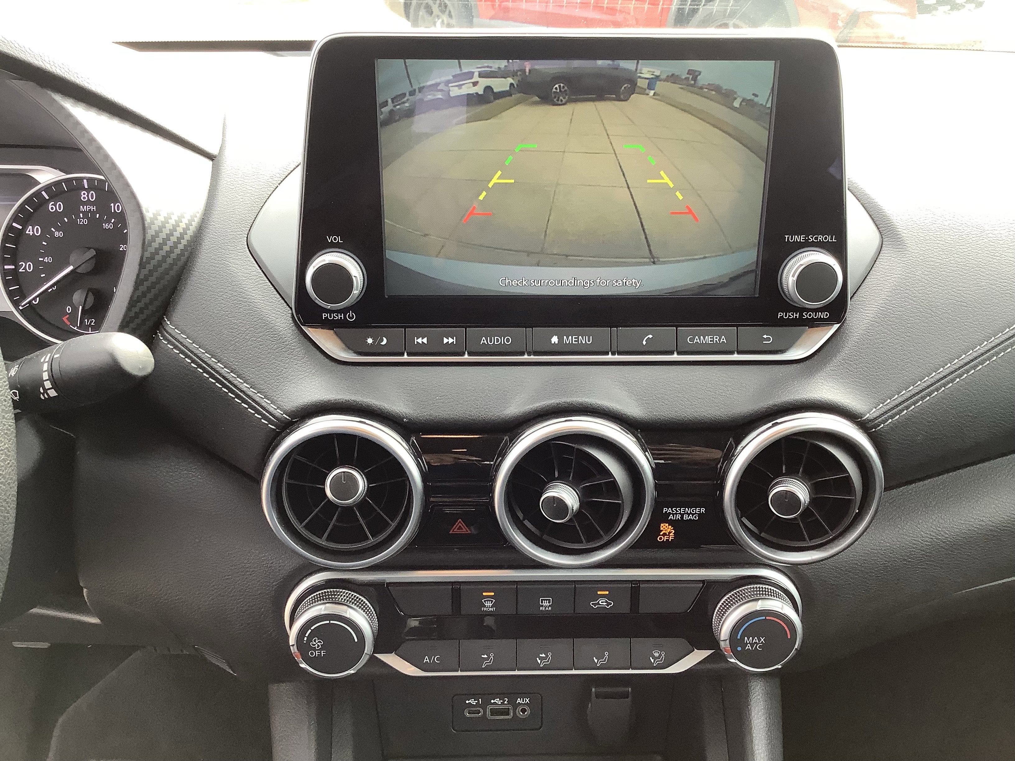 - Radio: AM/FM w/RDS/MP3/Aux-In -inc: 6 speakers plus 2 tweeters in A-pillar, 8" color display w/multi-touch control, streaming audio via Bluetooth®, Bluetooth® hands-free phone system, hands-free text messaging assistant, Siri eyes free, Google Assistant voice recognition w/Apple CarPlay and Android Auto, NissanConnect, (1) front USB connection port (type A), (1) additional front USB (type C) and (1) charge-only USB (type A) center console and SiriusXM radio w/advanced audio features